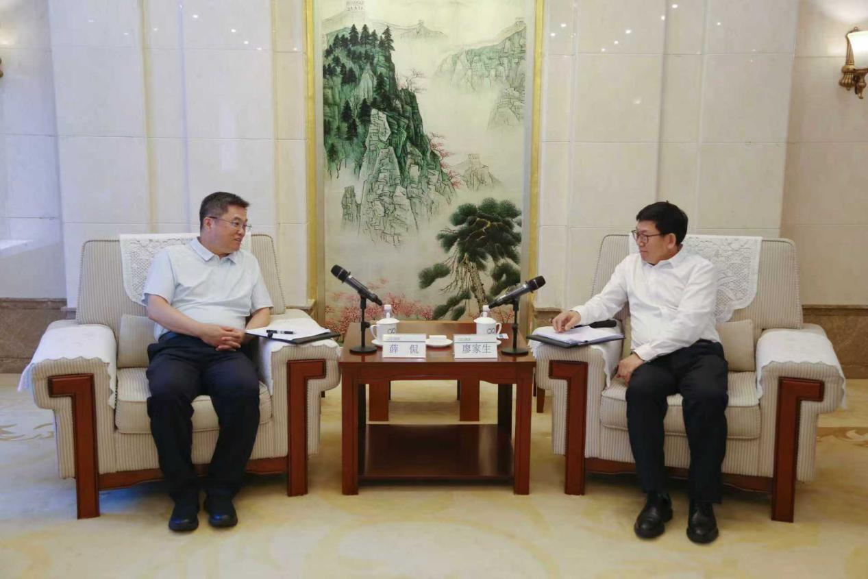 8月25日上午,集團公司黨委書記、董事長廖家生在北京節能大廈會見上海市楊浦區委書記薛侃一行,雙方就進一步開展務實合作進行深入交流。集團公司黨委常委、副總經理曹華斌參加會見。