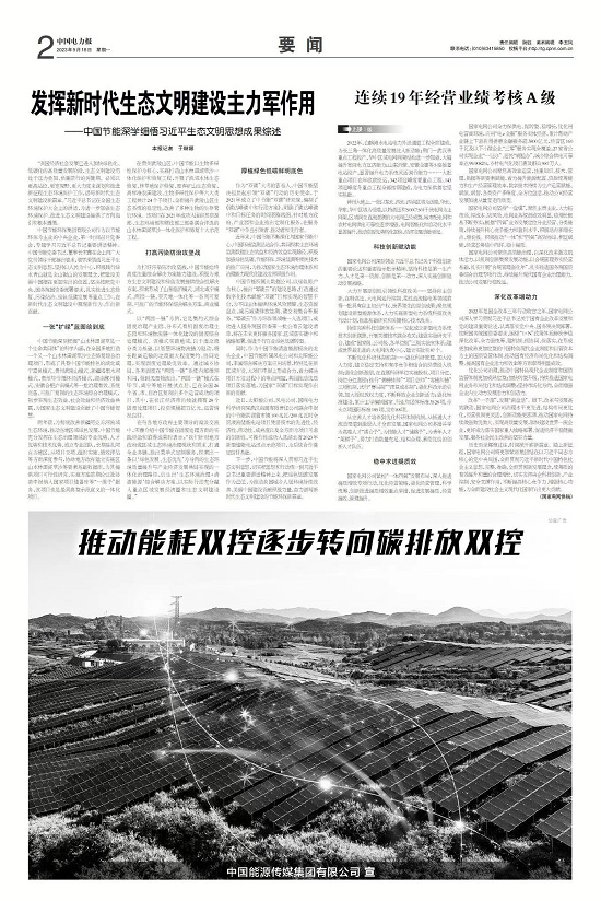 中國電力報:發(fā)揮新時代生態(tài)文明建設(shè)主力軍作用——中國節(jié)能深學(xué)細悟習(xí)近平生態(tài)文明思想成果綜述