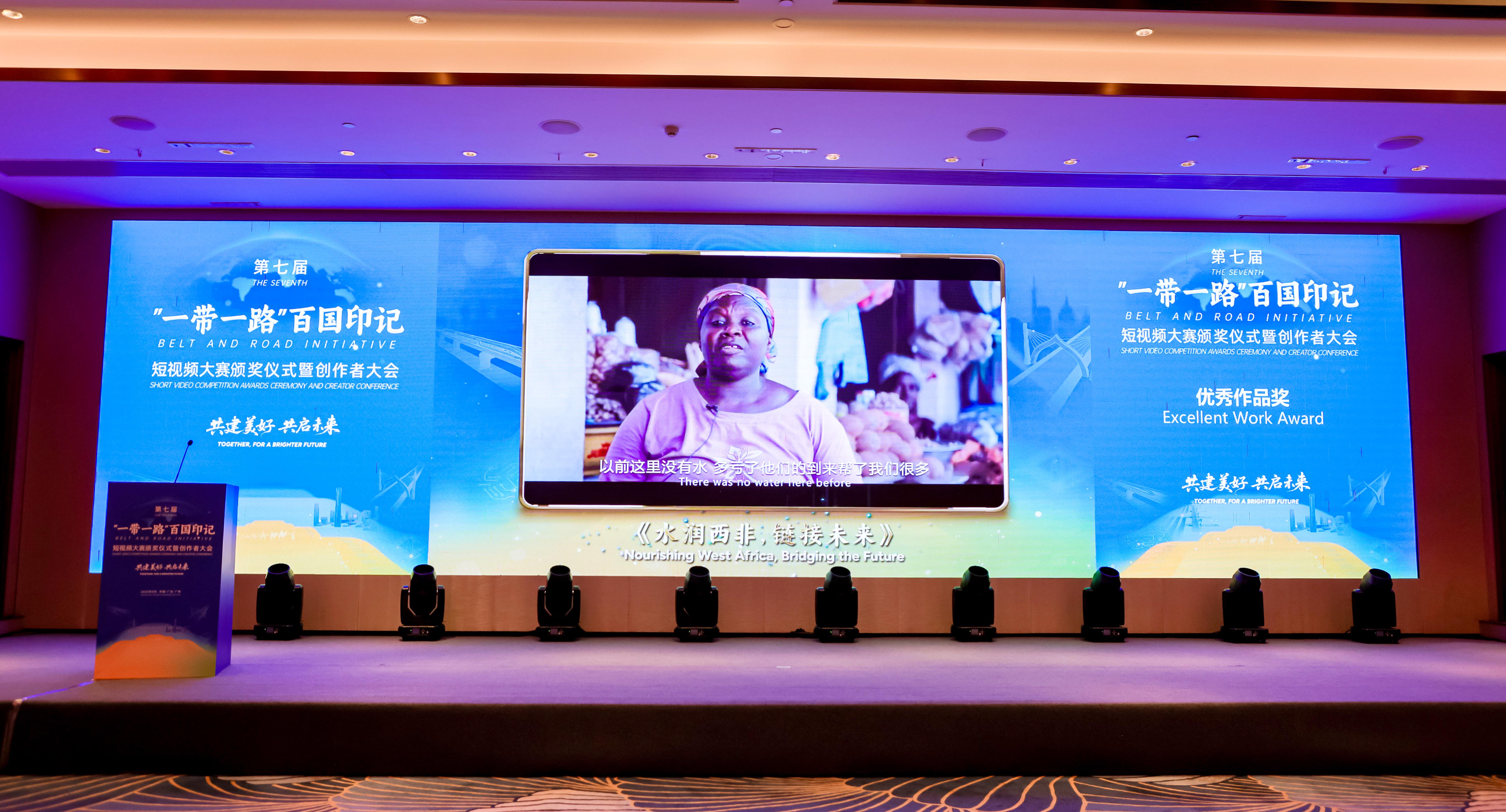 大會頒獎現(xiàn)場 《水潤西非 鏈接未來》以中國地質(zhì)在科特迪瓦實(shí)施民生供水工程,惠及當(dāng)?shù)匕傩諡楸尘埃靡粠瑤嬅妫鷦又v述了中國地質(zhì)20多年來,先后在科完成2000多眼水井、100多個農(nóng)村供水改善系統(tǒng)工程和多個主要城市供水項(xiàng)目的實(shí)踐故事,用鏡頭繪就了一幅跨越山海、民心相通的時代長卷,充分展現(xiàn)了中國地質(zhì)作為“一帶一路”倡議踐行者和人類命運(yùn)共同體理念建設(shè)者的生動形象。 第七屆“一帶一路”百國印記短視頻大賽以“共建美好,共啟未來”為主題,由中國公共外交協(xié)會、環(huán)球網(wǎng)聯(lián)合主辦,國務(wù)院國資委新聞中心等單位協(xié)辦,共征集全球130余個國家和地區(qū)的2000部作品。經(jīng)過組委會初篩,大眾票選、專家評審等多輪角逐,最終161部作品脫穎而出。據(jù)統(tǒng)計(jì),大賽作品全球總播放量累計(jì)突破17億,其中海外播放量達(dá)2億。此次公司獲此殊榮,進(jìn)一步提升了“中國地質(zhì)”品牌在國內(nèi)外的影響力,為公司樹立了良好的國際形象。