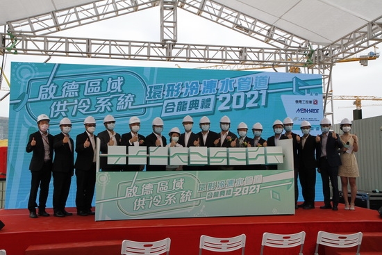 香港特區(qū)政府機電工程署于2021年4月19日在2849EM17A項目部舉行“啟德區(qū)域供冷系統(tǒng)環(huán)形冷凍水管道合龍典禮”,慶祝機電工程署在啟德新區(qū)冷凍水管道工程完工合龍。
