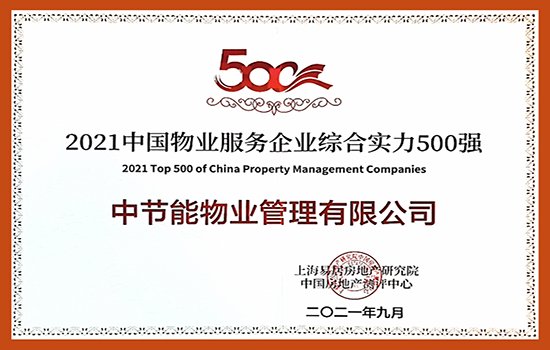 中節能實業下屬物業公司榮獲2021中國物業服務企業綜合實力500強