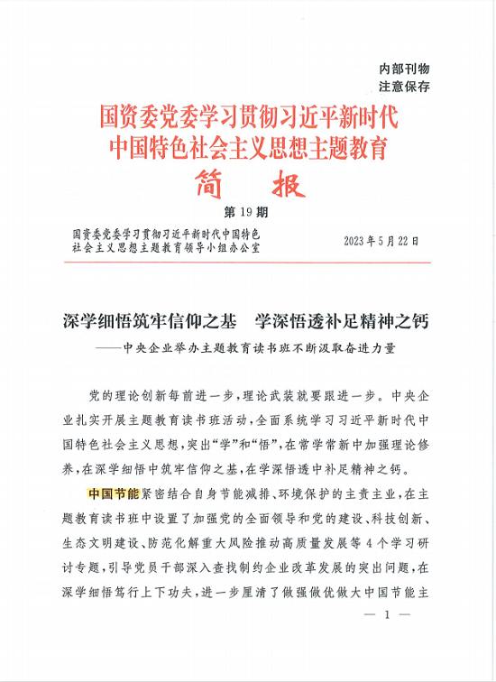 學(xué)習(xí)貫徹習(xí)近平新時(shí)代中國特色社會主義思想主題教育開展以來,中國節(jié)能深入學(xué)習(xí)領(lǐng)會習(xí)近平總書記重要講話精神,聚焦主題教育總要求和目標(biāo)任務(wù),堅(jiān)持把主題教育同做強(qiáng)主責(zé)主業(yè)、建設(shè)人與自然和諧共生的中國式現(xiàn)代化緊密結(jié)合、一體謀劃,以強(qiáng)化理論學(xué)習(xí)指導(dǎo)發(fā)展實(shí)踐,以深化調(diào)查研究推動解決發(fā)展難題,高質(zhì)量開展主題教育,為企業(yè)發(fā)展凝心聚力。