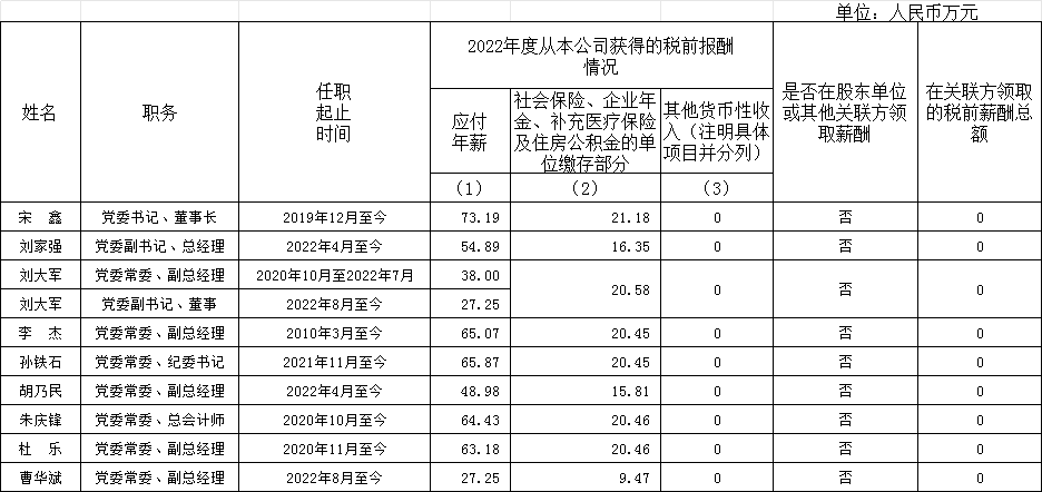 中國節能環保集團有限公司公司企業負責人2022年度薪酬情況