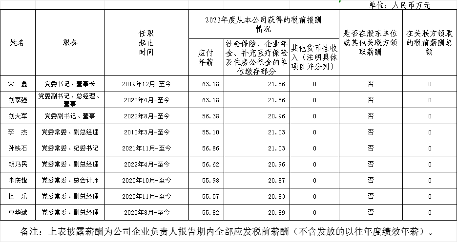 中國節能環保集團有限公司公司企業負責人2023年度薪酬情況
