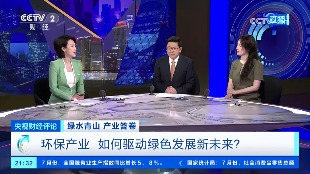 On August 15, Liao Jiasheng, Secretary of the Party Committee and Chairman of the Group, was interviewed live on CCTV Business Review on the topic of "How the Environmental Protection Industry Drives a Green Future". He elaborated on the profound meaning of the concept that "lucid waters and lush mountains are invaluable assets", highlighted the achievements and innovations in the energy conservation and environmental protection sector, and showcased CECEP's exploration and practices in areas such as waste treatment, sewage management, ecological restoration, integrated energy management, and realizing the value of ecological products.