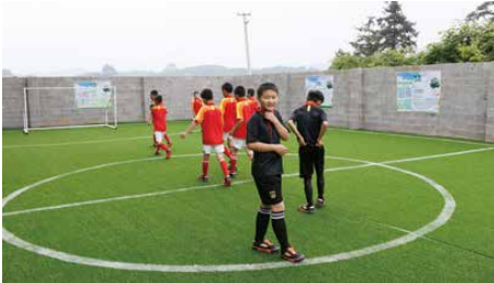 The small artificial turf football field reconstructed by CECEP for Xinshi Primary School in Fuchuan County.