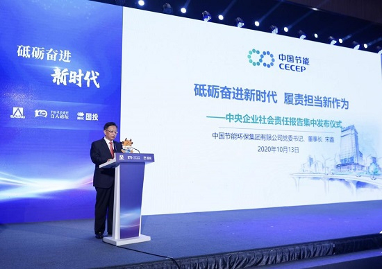 A CSR report release ceremony for centrally administered state-owned enterprises, sponsored by the State-Owned Assets Supervision and Administration Commission of the State Council (SASAC) and organized by the China Social Responsibility 100 Forum and the State Development & Investment Corp., Ltd., was held in Beijing on October 13. More than 300 representatives from 97 centrally administered enterprises, local state-owned enterprises, and mainstream media organizations attended the event. Song Xin, chairman of China Energy Conservation and Environmental Protection Group (CECEP), was invited to the event and delivered a keynote speech.
